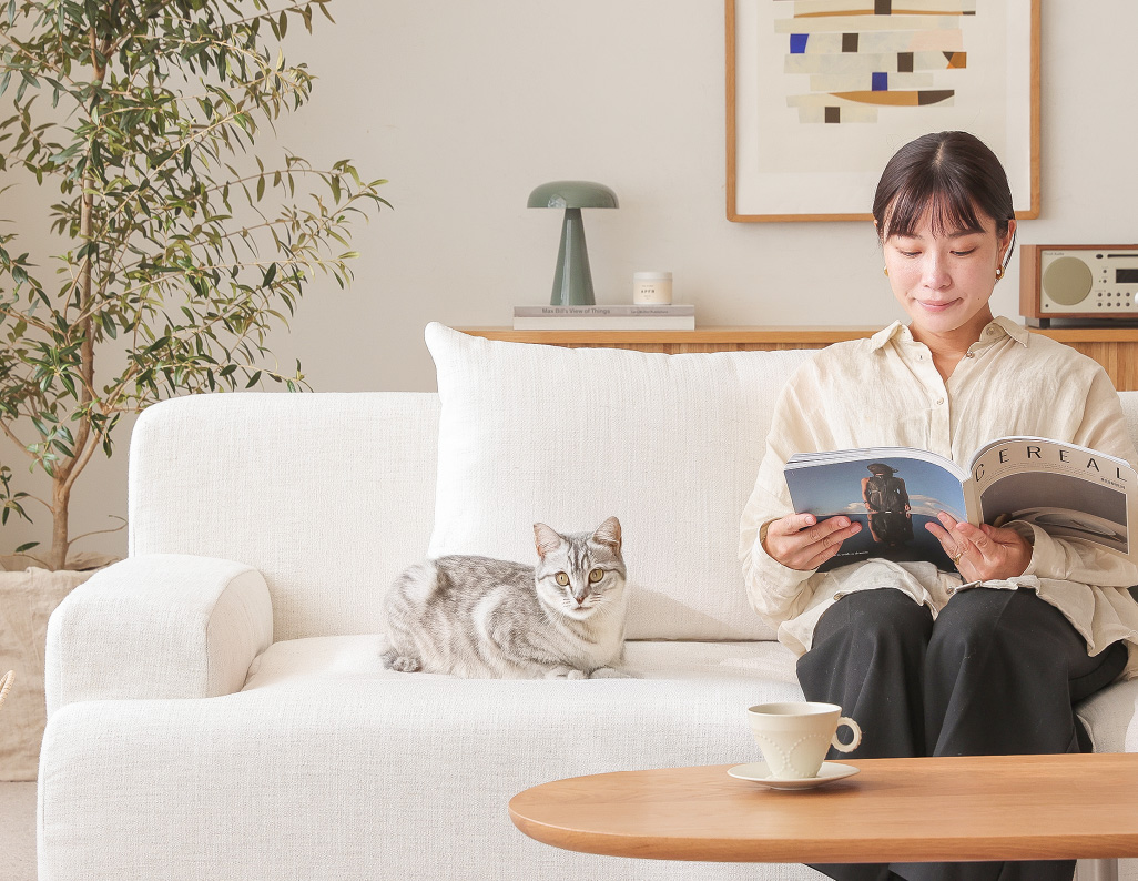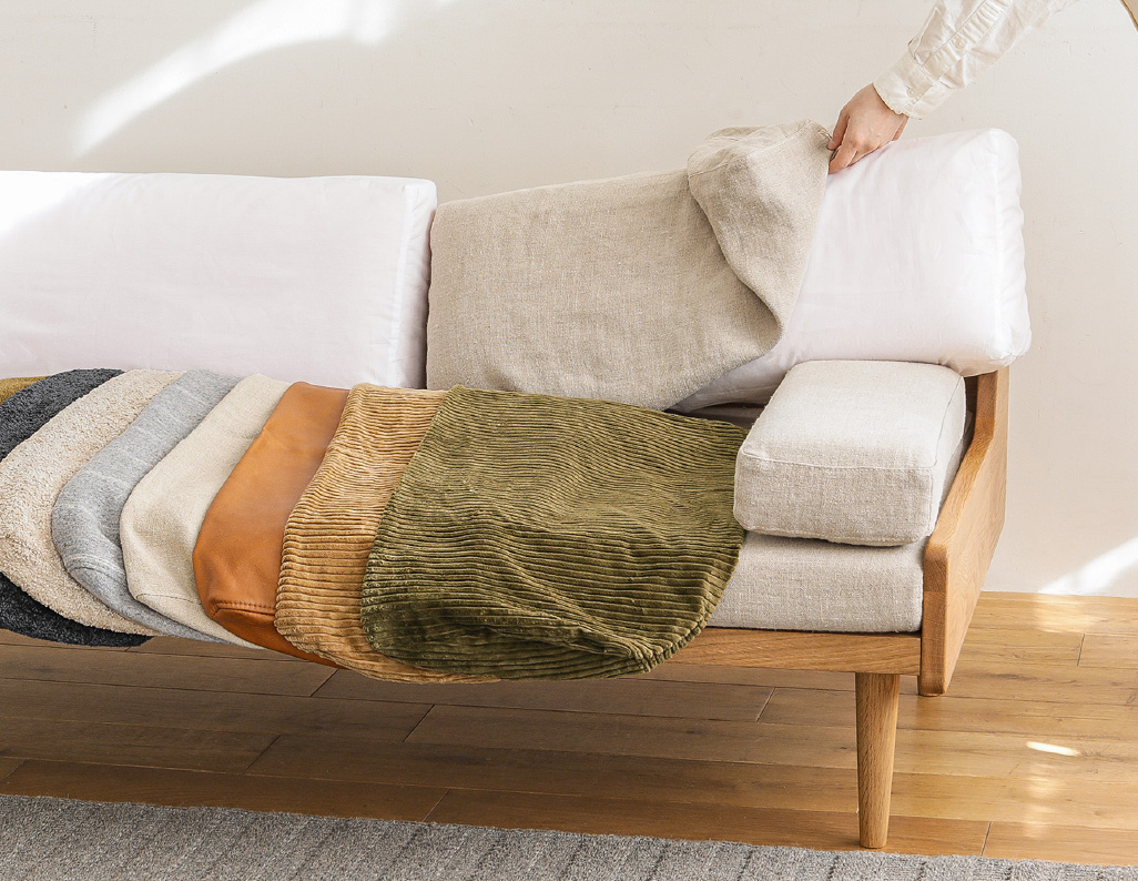 引っかきに強い特別なカバーで覆ったソファーなら、ペットと過ごしている方も安心して暮らせます。カバーリングを選べば、汚れた場合もご自宅の洗濯機で気軽にお手入れできます。