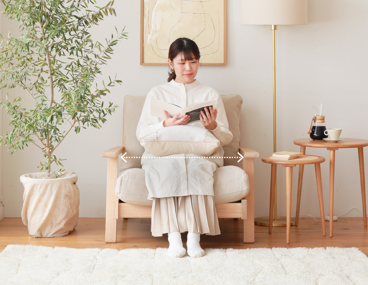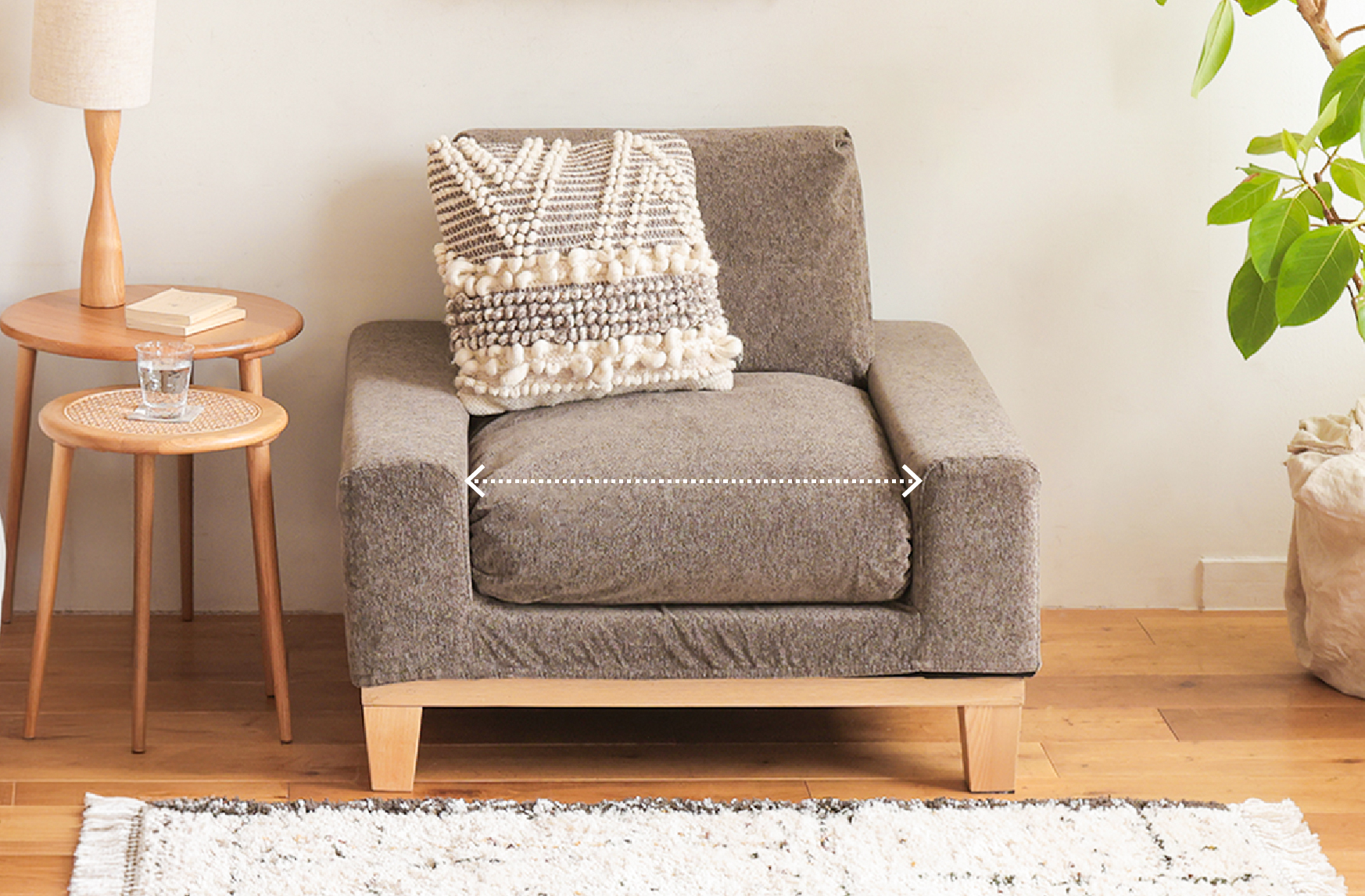 座面幅60cm以上あると、1人掛け用として無理なくゆったりと座れます。コンパクトなサイズのため、レイアウトを自由に楽しむことも。