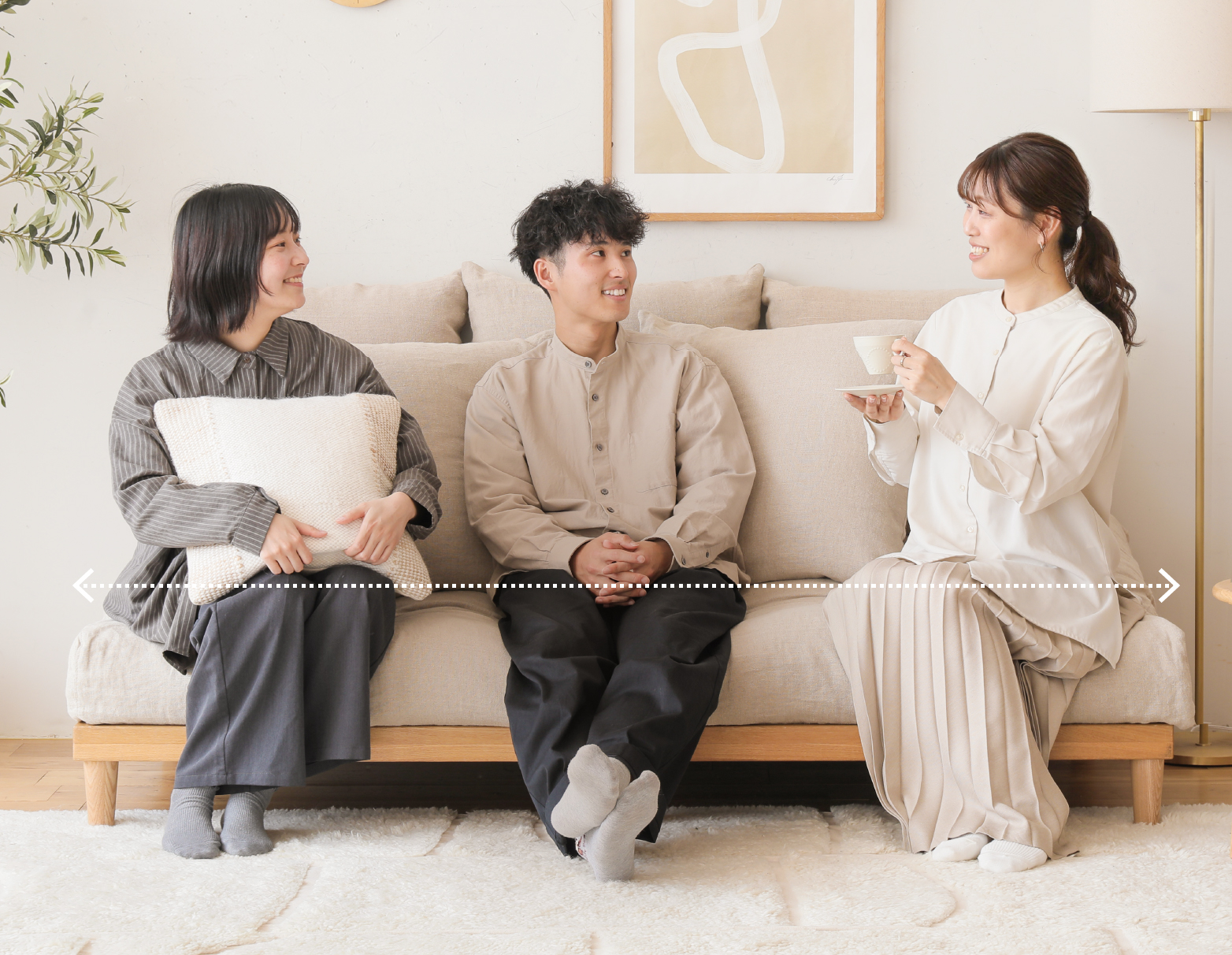 3人で座りたい場合は、座面幅180cm以上のソファーがおすすめです。来客が多い時でも窮屈さを感じにくく、日常使いからくつろぎの時間まで、心地よいリビング空間を楽しめます。