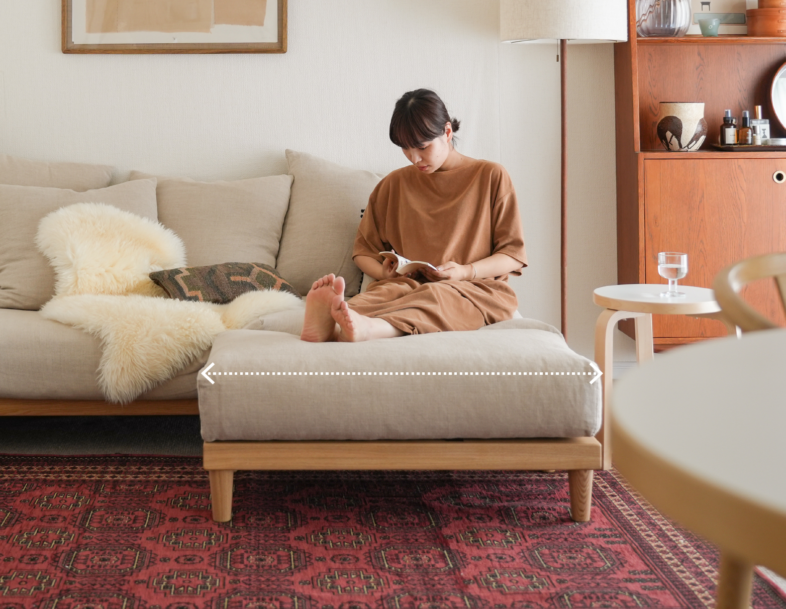 横になってくつろぐなら広め、作業中心ならコンパクトに。過ごし方に合う幅で、快適さが変わります。