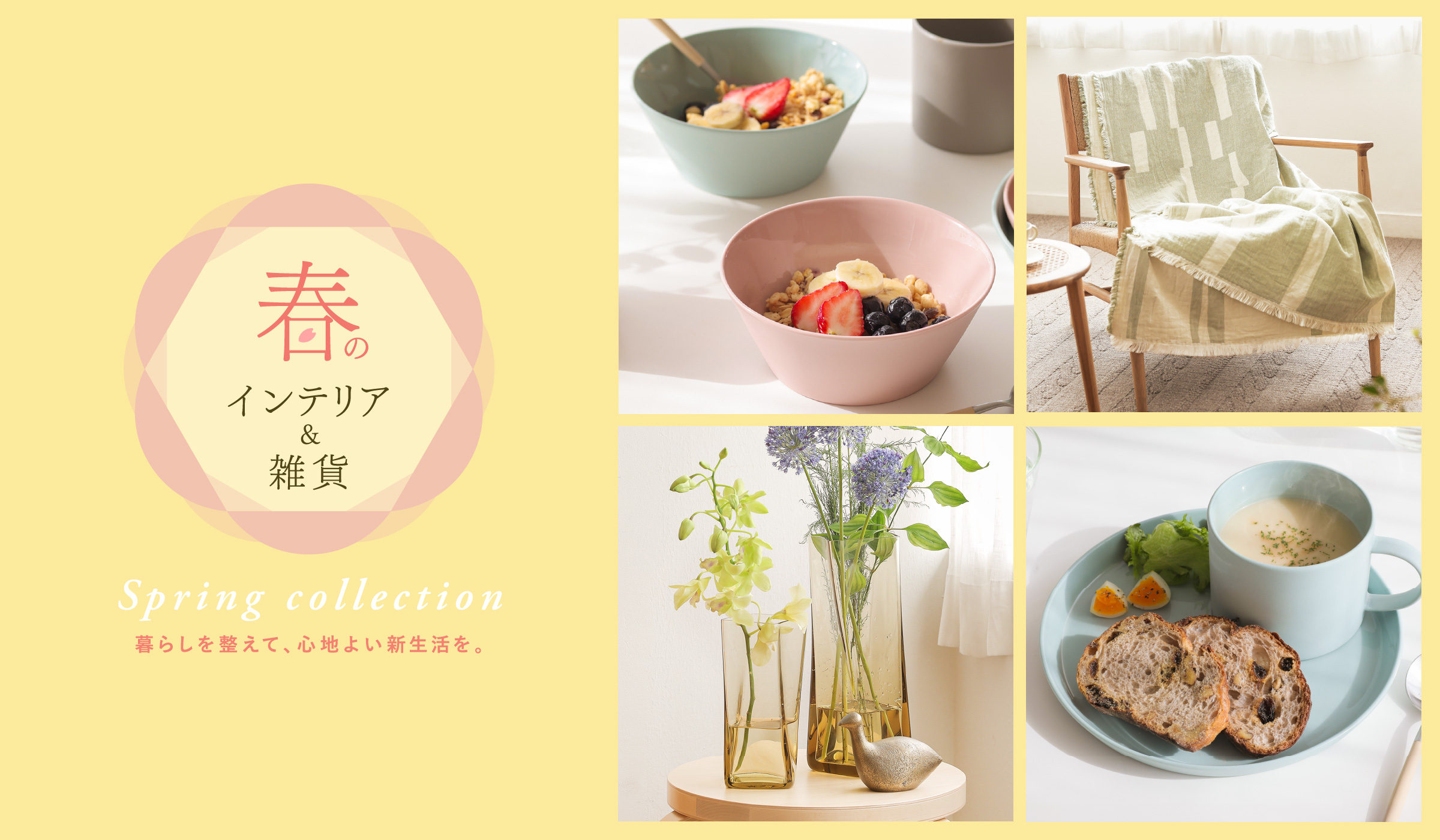 毎日使うキッチンまわりは、季節感を取り入れやすい場所。春めくキッチンクロスや明るい色味の食器を加えるだけで、いつもの家事時間が少し軽やかになります。新生活の高揚感は、日々の動線の中にこそ宿ります。