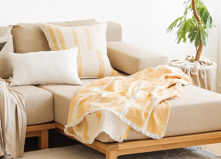 ブランケットやクッションカバーなど、視界に入る面積の大きなアイテムは、お部屋の印象を左右する存在です。素材をコットンやリネンに変えるだけで、空間はぐっと軽やかに。新生活は、大きく変えずに、大きく印象を変えることからはじめてみませんか。