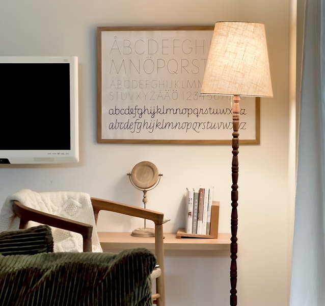 「フロアライト GRASP(グラスプ)」は、優しい色合いのシェードと彫刻のようなクラシカルなウッドスタンドで、灯をつけていない時にも、空間に温もりを与えてくれます。