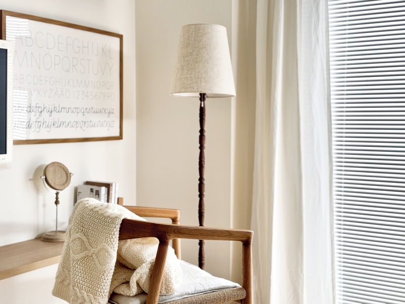 ファブリックのシェードを通した、まぶしさのない柔らかな光は、長時間部屋を照らしておく、リビングにおすすめです。