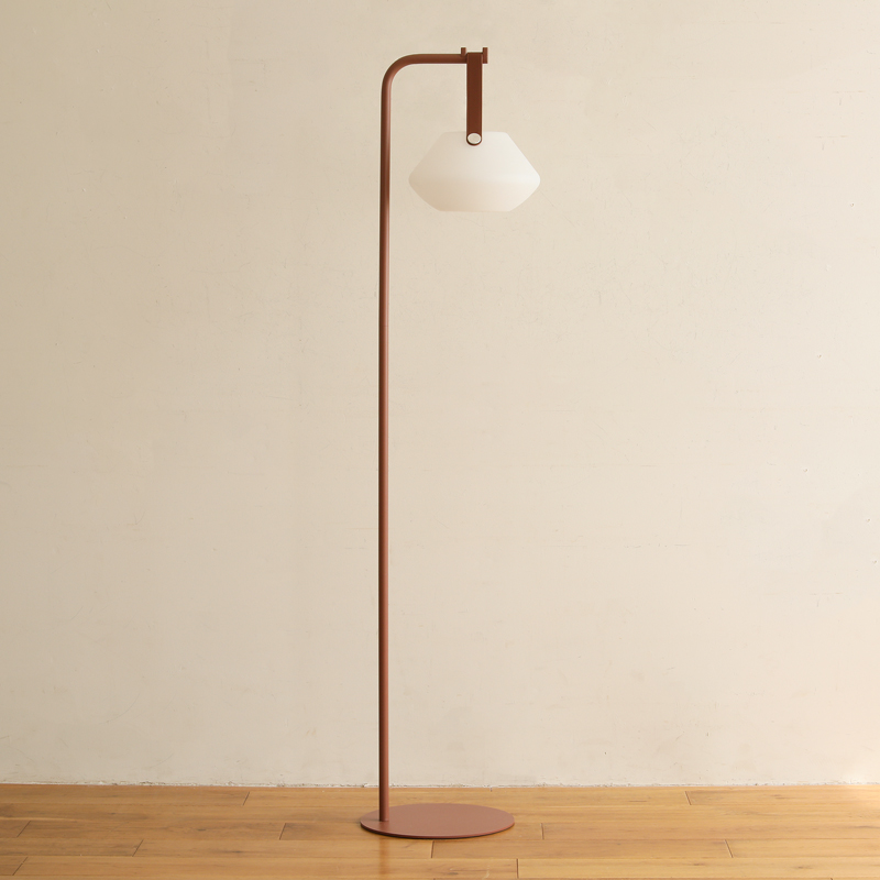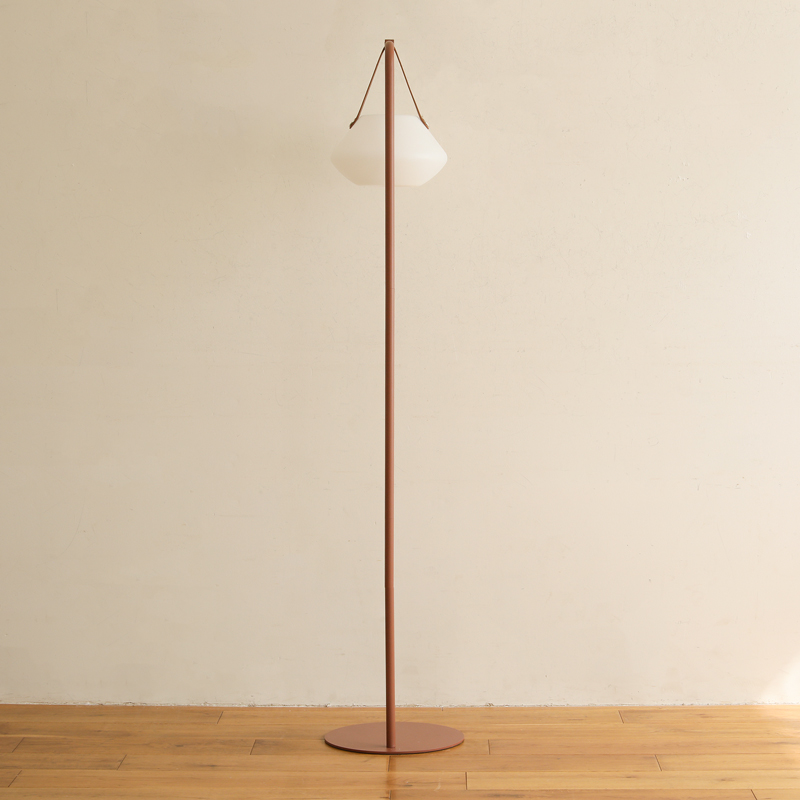 L字の支柱にシェードを吊り下げる「提灯」のようなデザインが特徴です。