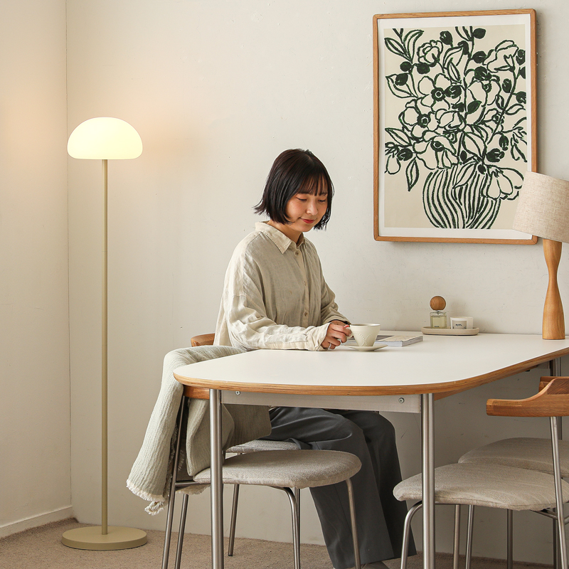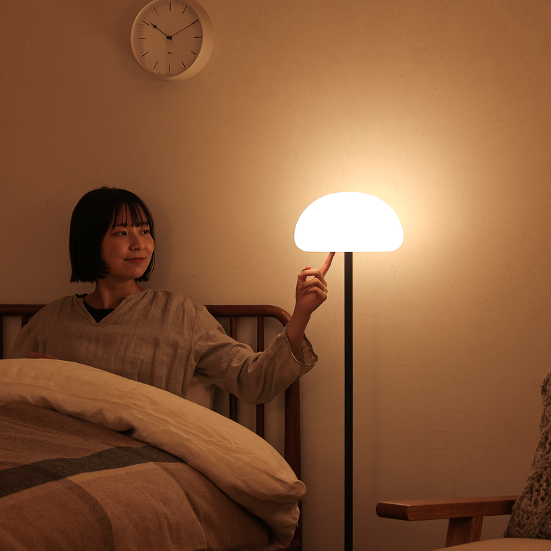「キノコのカサ」のようなやさしい丸みを帯びたシェードが特徴です。