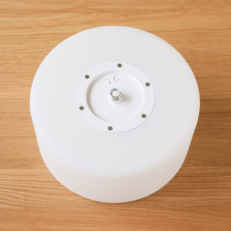 シェードの下にコードの差し込み口がございます。「円柱」「半球」タイプも、「ハンギング」と同様に支柱からシェードを取り外して充電いただけます。