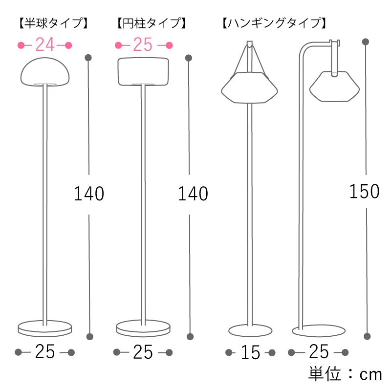 半球タイプ、円柱タイプ:幅 25cm × 奥行き 25cm × 高さ 140cm