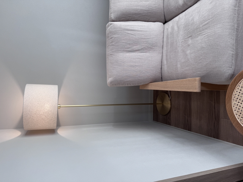 フロアライトは、必然的に目線の高さに来ますので、そこに「柔らかで、やさしい風合いの照明」があることで、少しでも日々が柔らかな気持ちになればいいなと思ってデザインしました。