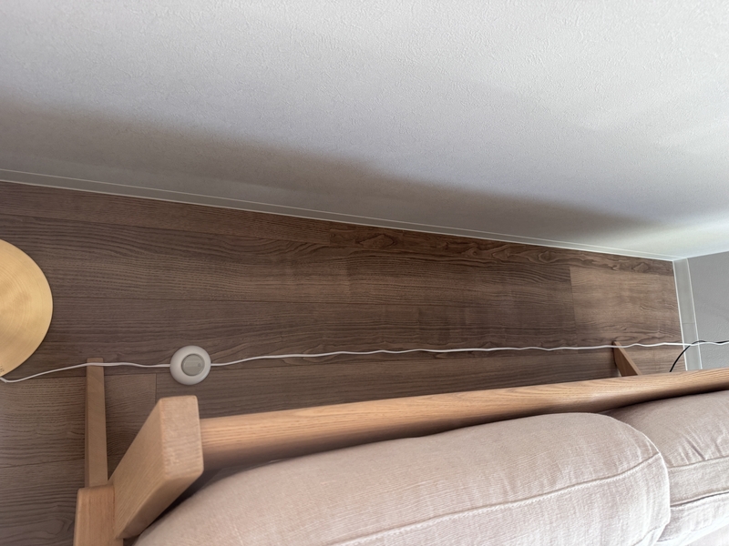 ソファーで隠しているので許容範囲ですが、スイッチとコンセントの長さや目立ち具合が少し気になります。