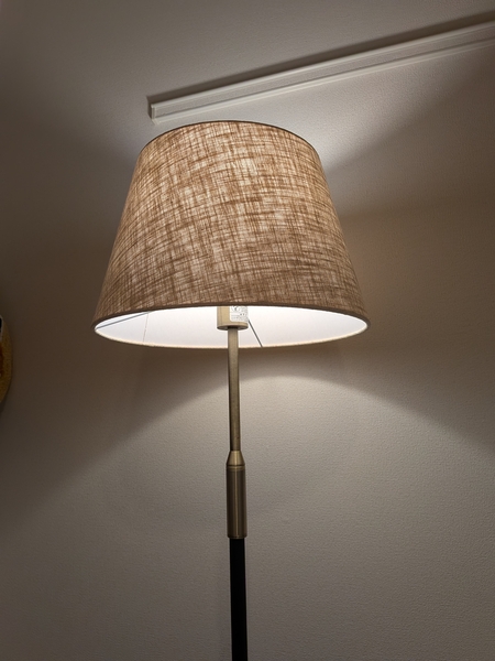 クラシカルな雰囲気が漂うフロアランプで、やわらかく温もりある空間を。ファブリック面や上部から漏れる光が、周囲をほどよく照らしてくれます。