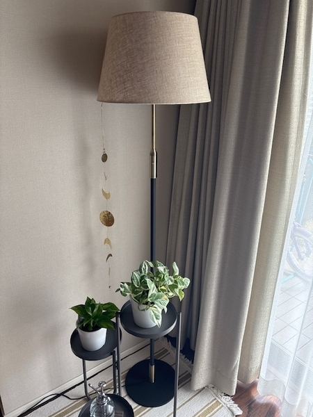 綿麻素材を使用したシェードがブラックのフレームの印象をやわらげ、温かみのある雰囲気に。どんなテイストでも合わせやすいタイプです。