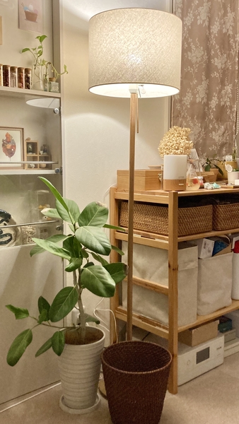 フロアライトがあると、天井照明だけでお部屋を照らしたときと比べて、陰影が生まれ、リラックス感のある空間に。また、目線の高さにくることで、お部屋の彩りとしても、抜群の効果を発揮してくれます。
