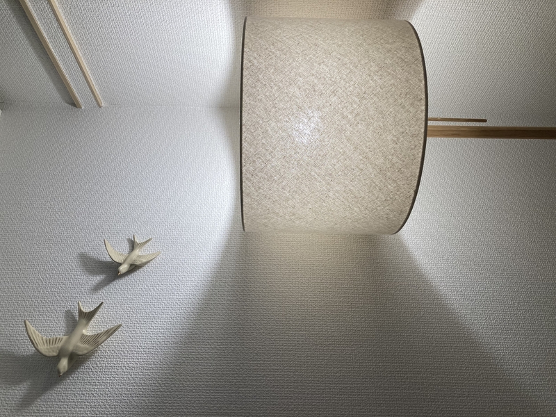 今回のフロアライトの良さとして、もうひとつ注目していただきたいのが「消灯時の美しさ」です。自然素材を使用していることで、明かりのついていない昼間も、温もりを感じます。
