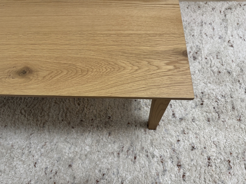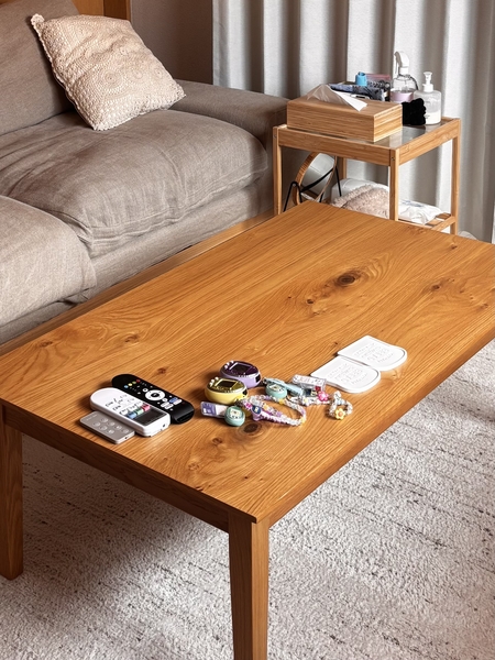 その中で、無垢と見まがうような節あり天板を実現できたのは、美しいローテーブルにさらに近づけたと満足しています。
