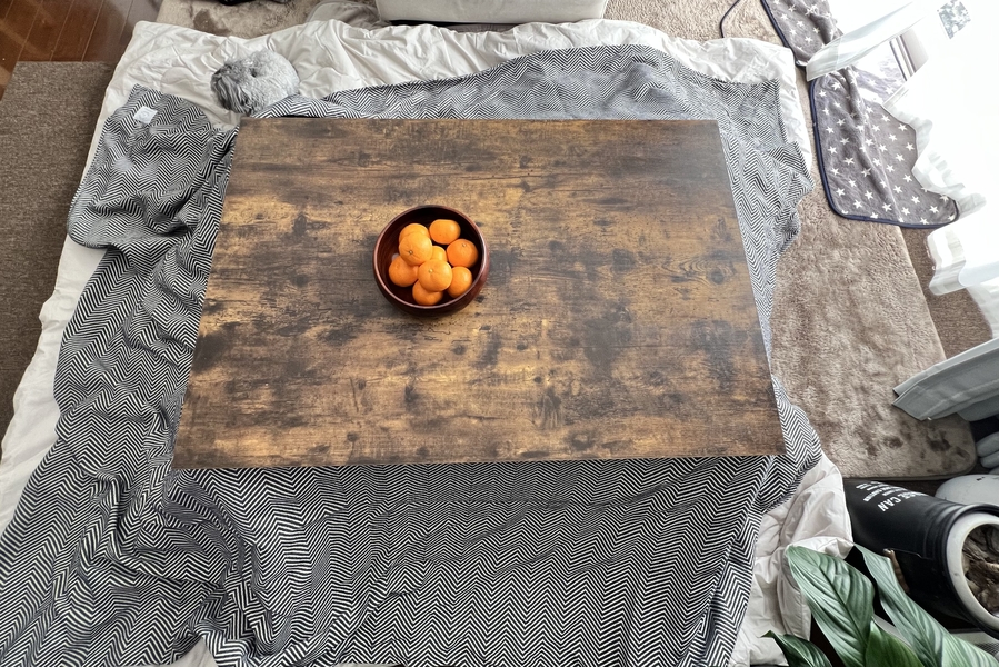 テーブルに対して布団が大きすぎず、ジャストなサイズ感なので、こたつに入っていない時の印象がすっきり見えるのも嬉しいポイントです。