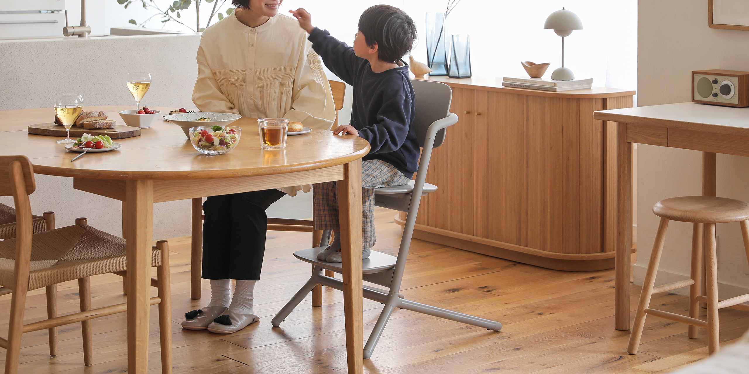 子育て世帯の暮らしに、やさしく寄り添うチェアです。