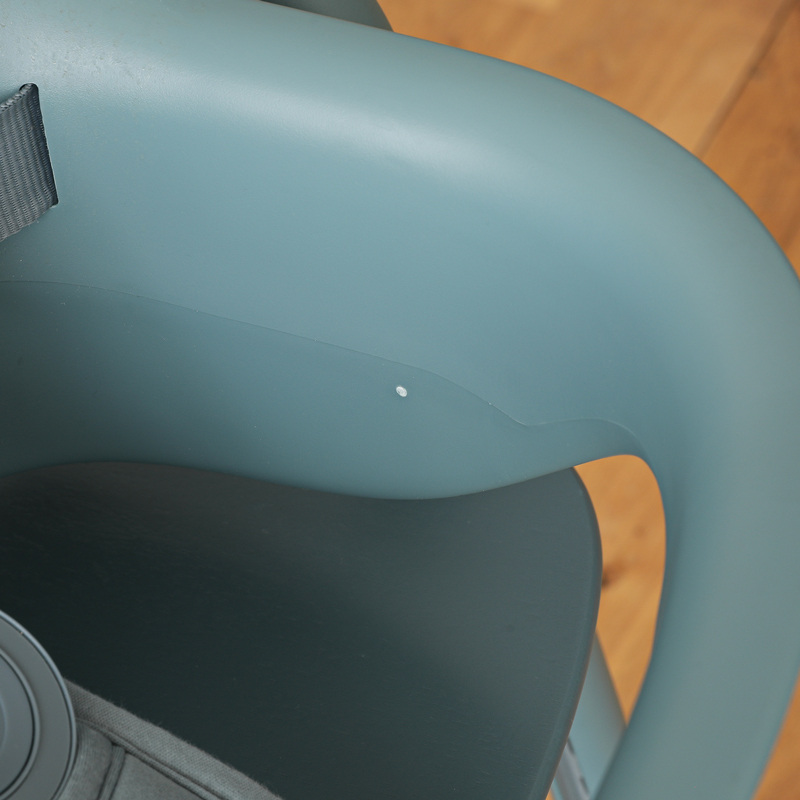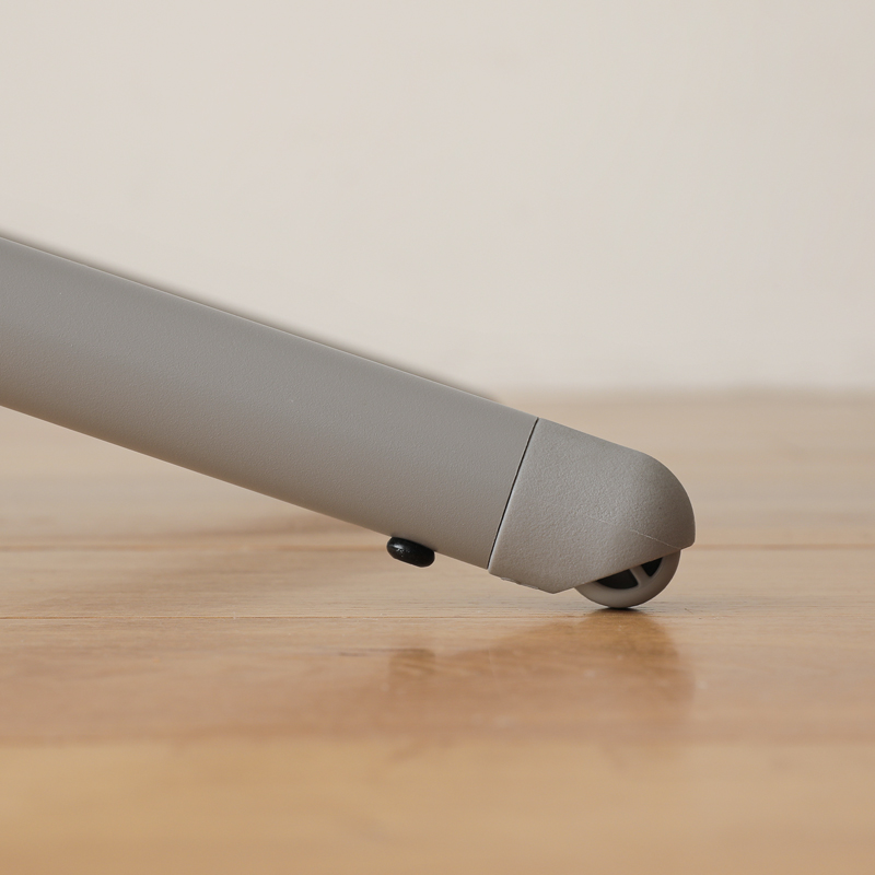 短くする代わりに、レモの後脚には、転倒防止のキャスターが付いています。そのため、子どもが後ろにのけぞっても、転倒せずチェア自体が後ろに移動する仕様に。