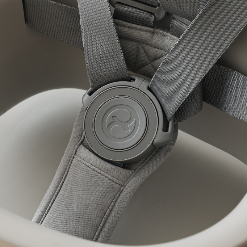 ハーネス付きベビーセット、スナックトレイは、工具なしで取り外しが可能。