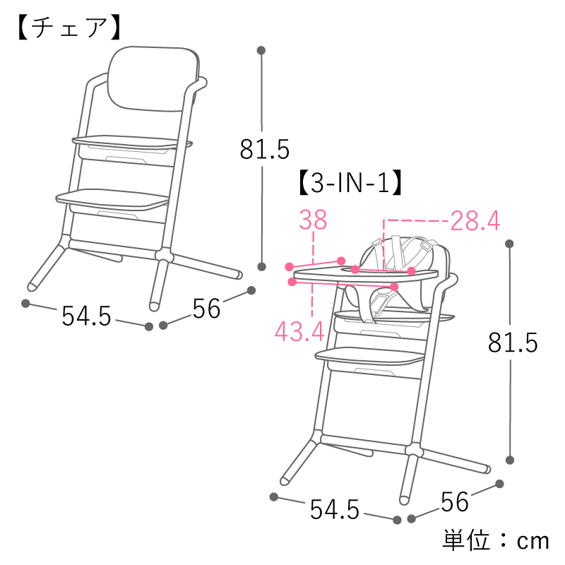 3-IN-1は、通常のレモチェアに、ハーネス付きベビーセット、スナックトレイが付いた仕様。