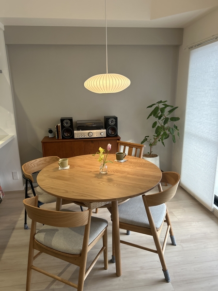 私たちがおすすめしているのは、テーブルの天板から照明までの距離が「60〜80cm」になるバランスです。お部屋の天井高や、テーブルのサイズに合わせて、コードの長さを調整することで、照明の見え方がぐっと洗練されます。