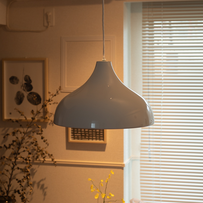 まぶしさによるストレスを感じやすい方でも、bulb shade を組み合わせることで、やさしい光に。見た目の美しさはそのままに、快適に過ごせるペンダントライトが完成しました。