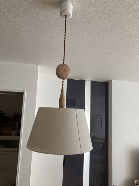 ねじれているコード、シェードとコードを繋ぐ木の部分も質感が良くてお気に入りです。