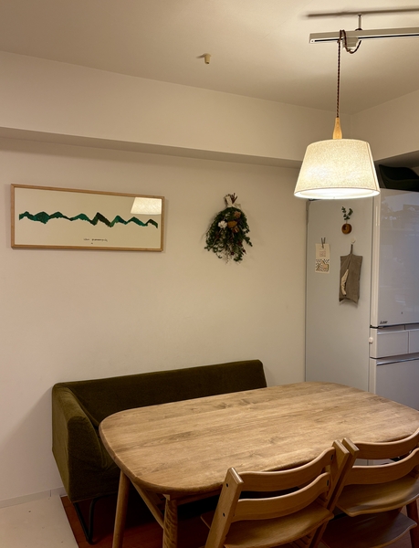 テーブルの真上に設置しているので、食事のときは少し明るめに感じる場面もありますが、