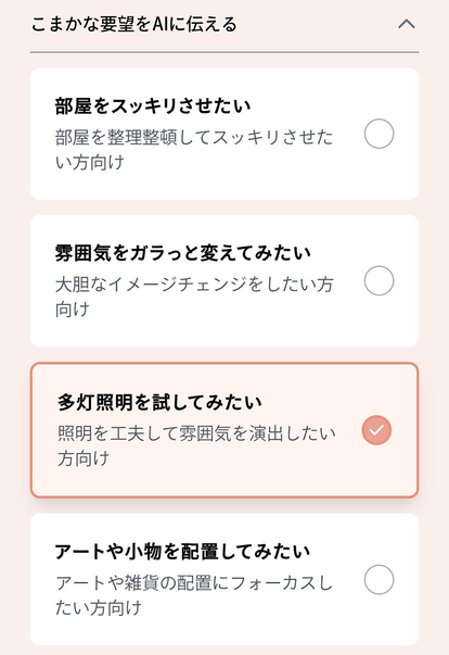 逆に、寝室などのそれほど明るさを求めない落ち着いた空間には「1灯」がおすすめです。