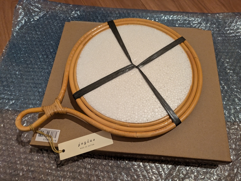 ラタンの持つしなやかさが、このきれいな曲線加工を可能に。三層に重ね合わせた円形が、立体的で美しいフォルムを実現しています。