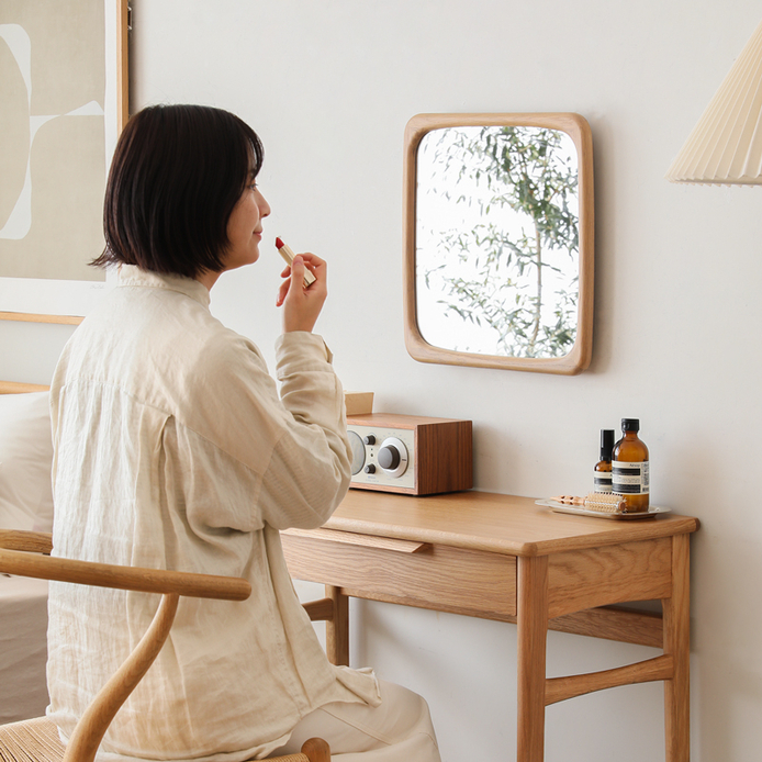 このミラーは、質の良いホワイトオークを贅沢に使い、仕上げもマットな塗装にすることで、ヴィンテージの様な深みのある風合いを感じさせるようにしています。