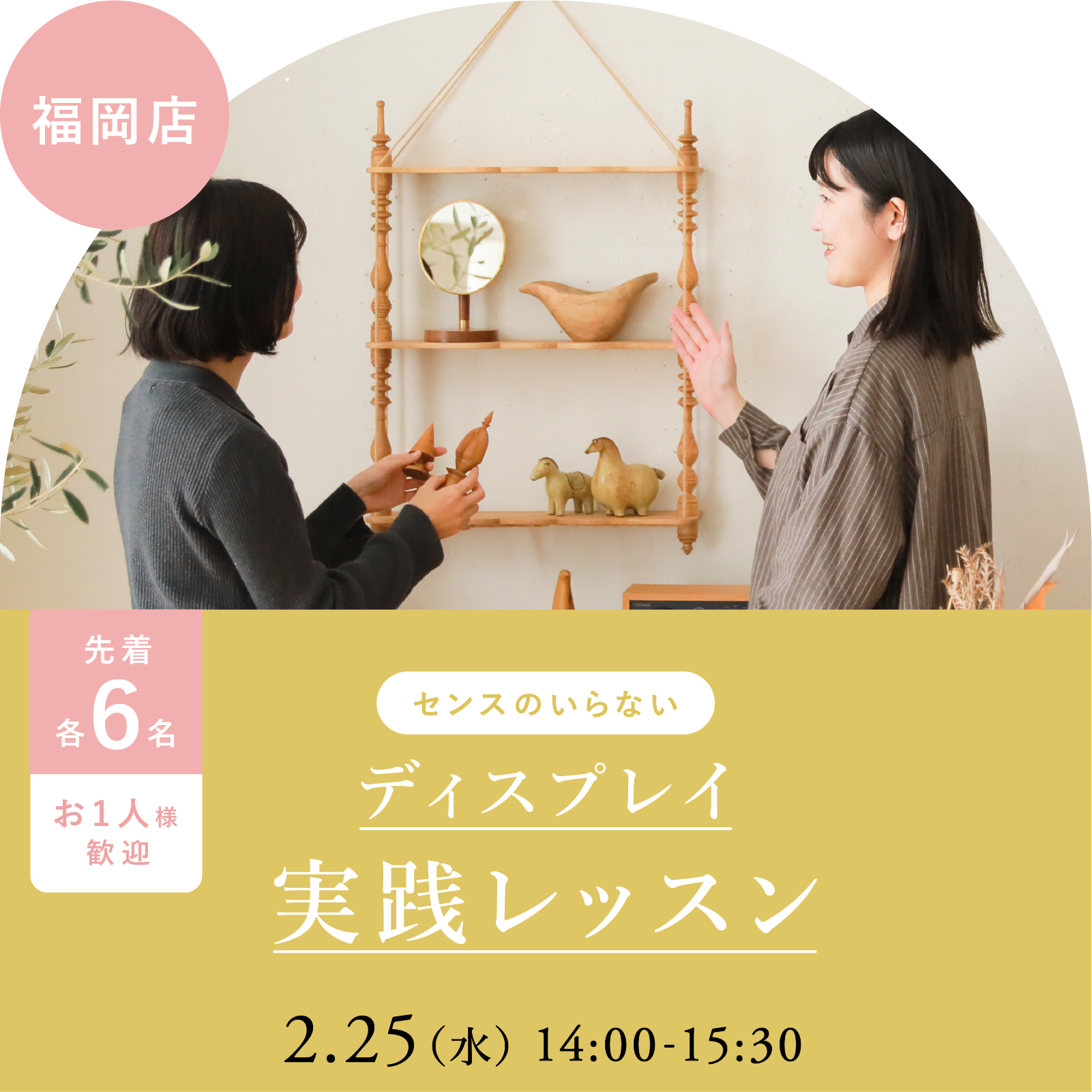ディスプレイセミナー@福岡店|2月25日(水)14時~福岡店での1.5時間程度の体験型レッスンです。最大6人のグループ制です。