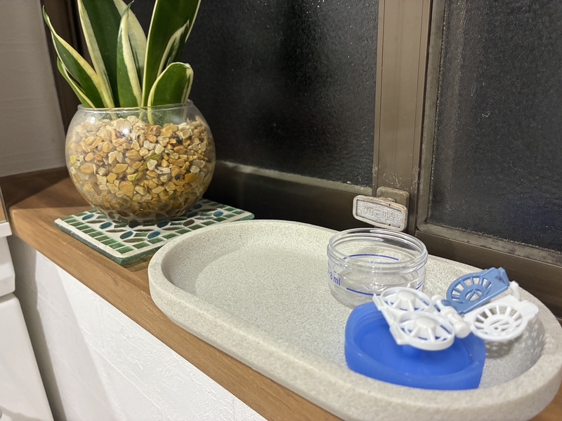例えば、アロマオイルやメガネ、アクセサリーなど、それぞれは小さなアイテムでも、ばらばらに置くと空間が散らかって見えてしまうもの。