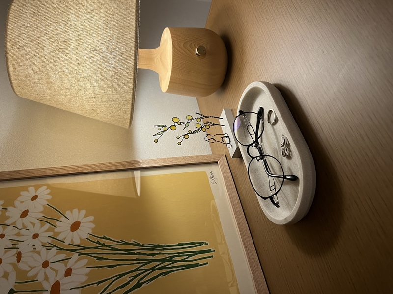 日常的に使う眼鏡や指輪を置くのに使っていますが、置くだけでおしゃれ感があります。