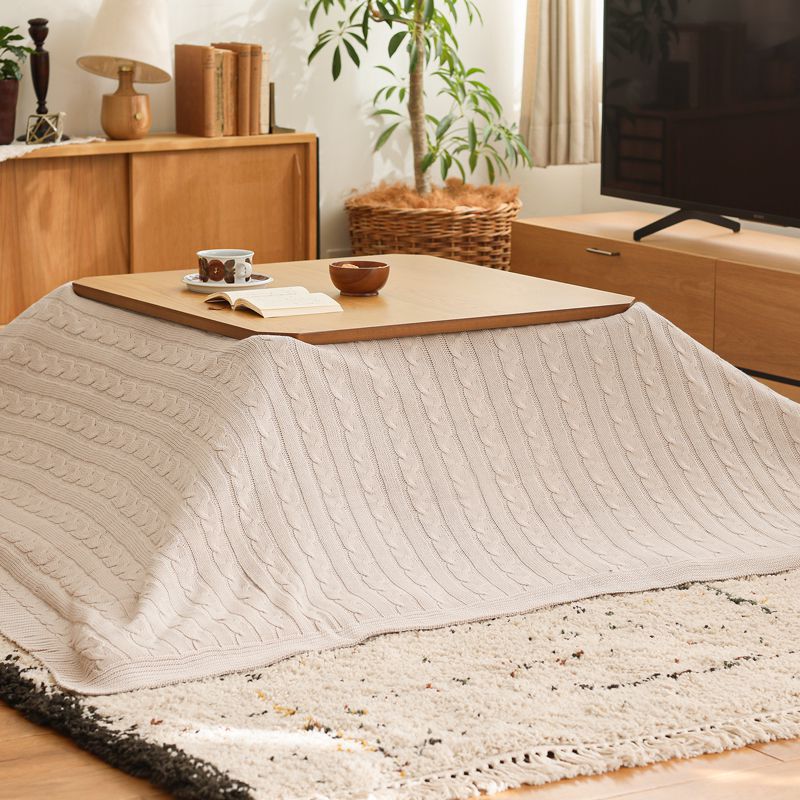 こたつ布団掛けカバー ケーブルニット(正方形190cm×190cm)【ナチュラル】