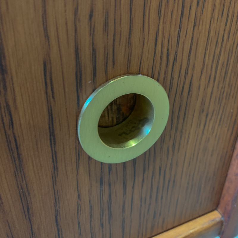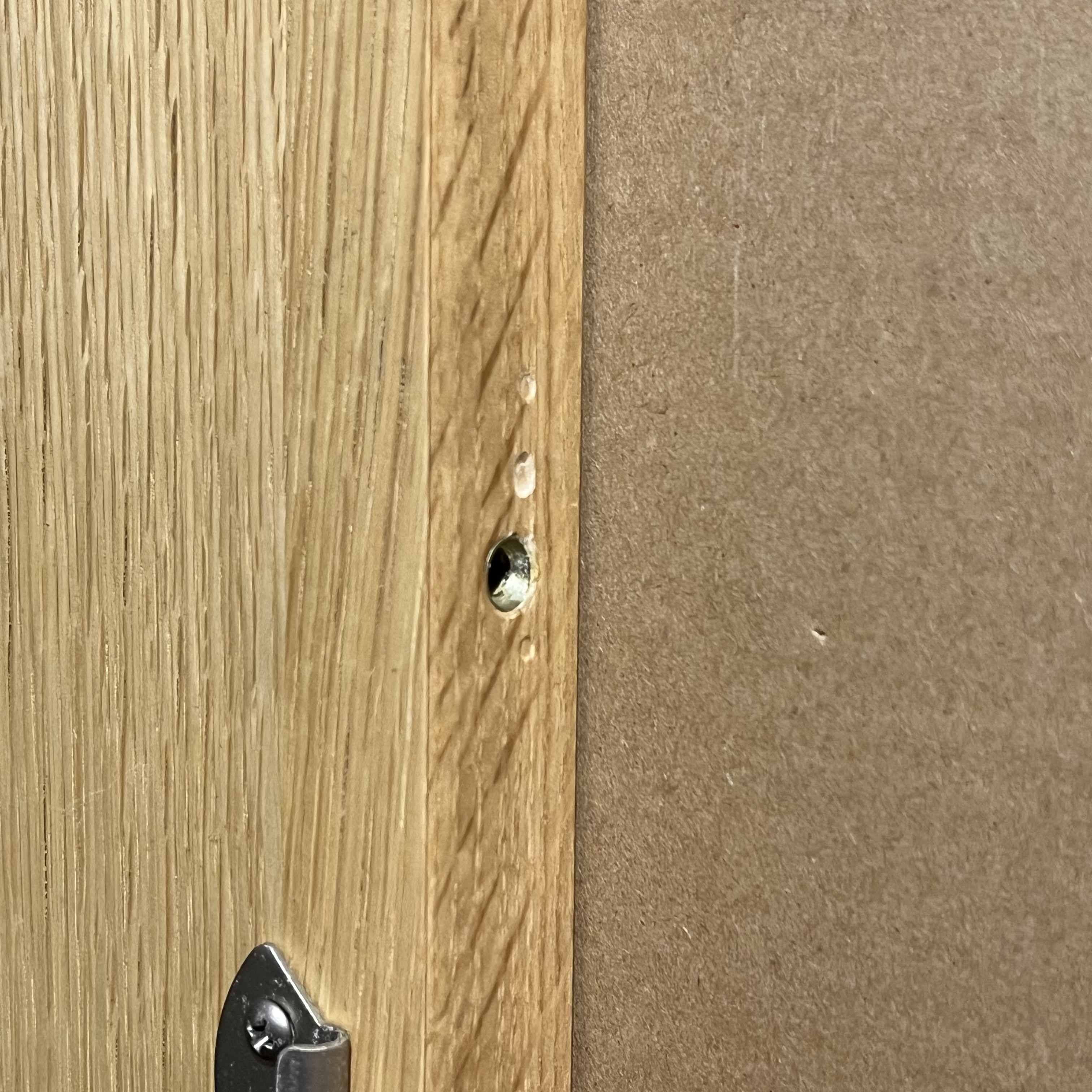 シェルフ部分下段右下補修跡あり右扉真鍮取っ手黒点、接着剤はみ出しあり |