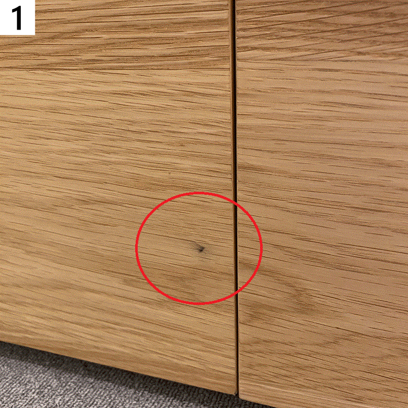 中板側面・裏面キズ多数あり。 天板塗膜の擦り傷、テカリ多数あり。 |