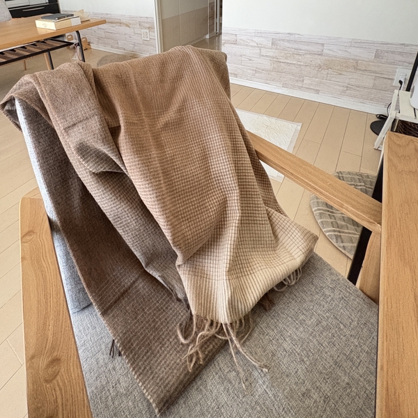 白の割合が思っていたより少なく、キャメルとブラックの面積が多めでした。