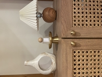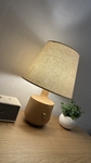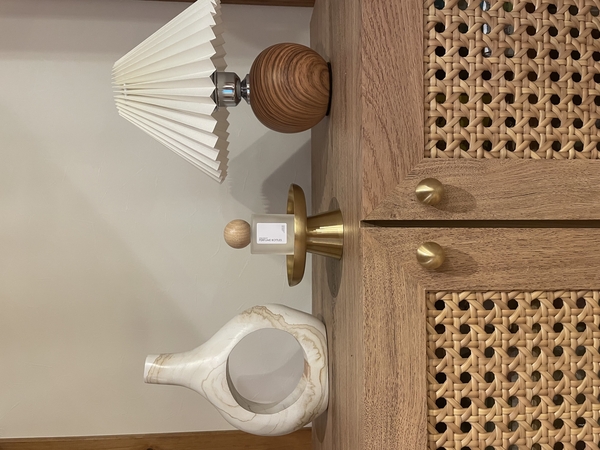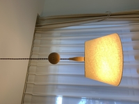 シェードの色も木部のデザインも柔らかくて 小さな灯りなのに とてもホッとします。