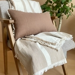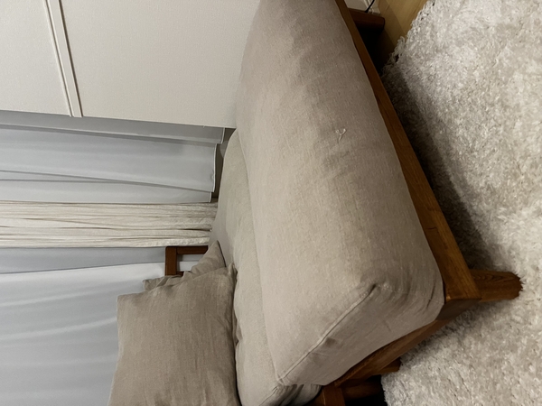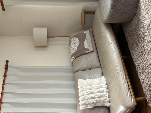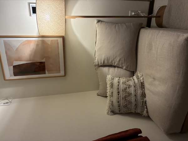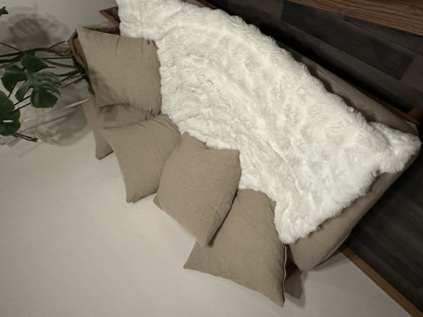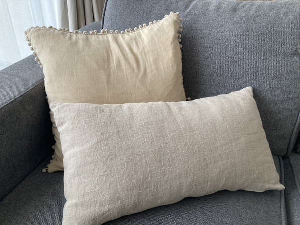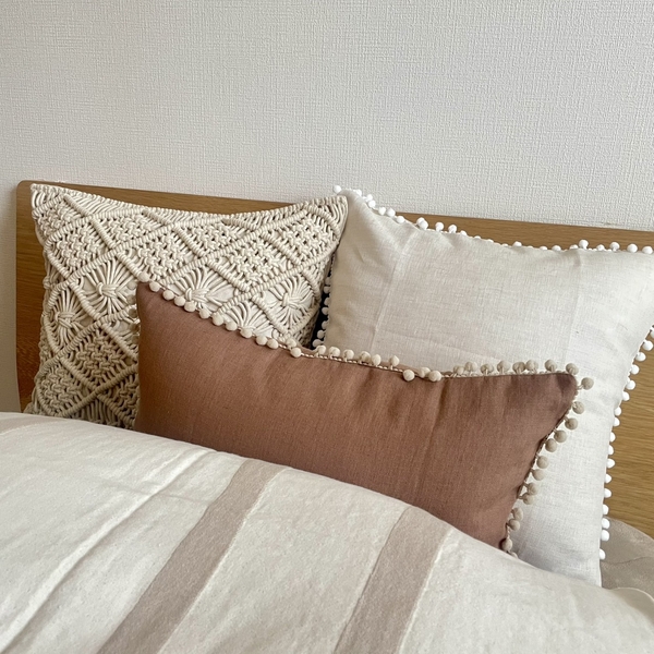 リネン生地×ベージュの組み合わせで、部屋全体の印象がやわらかく落ち着いた雰囲気に。