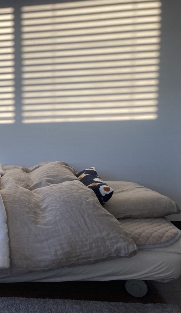 遮光裏地付きですが真っ暗になりすぎず、気にならない程度にやさしく光が入るのも使いやすいところです。