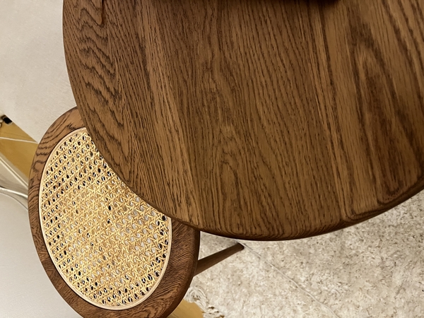 買い換え前も天然木のチェアでしたが、少し太めで、どっしりとした重さがあったのですが、座るために椅子を引くたび、掃除機をかけるために動かすたび、「重いなー」と思っていて…。