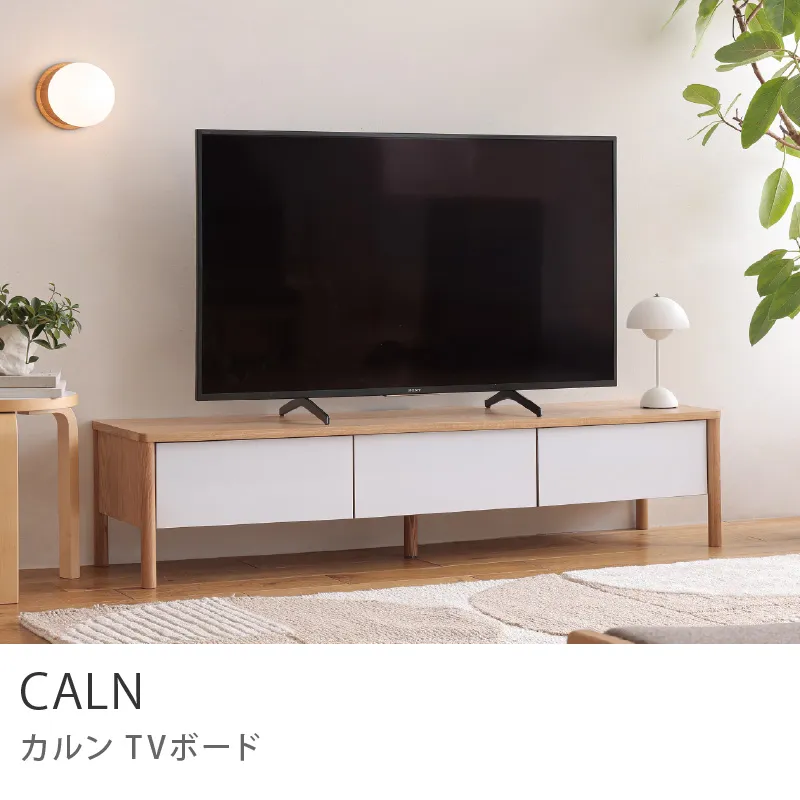 テレビの存在感をすっきりと軽減してくれる、TVボード「 CALN(カルン)」。白い扉は気になる生活感を軽減し、クリアで透明感のある表情を楽しめます。