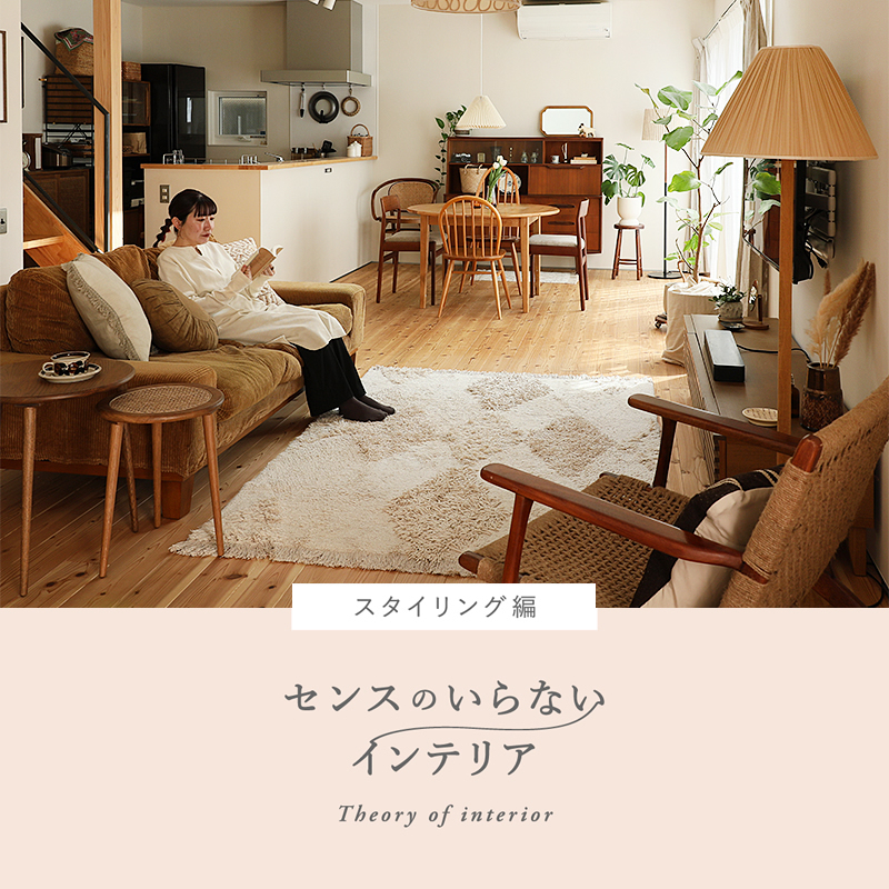 お部屋のスタイリングの中でも特に重要な「レイアウト」「家具やインテリア選び」「配色」「円形の取り入れ方」「多灯照明」「ラグマットの重要性」「見せる収納と隠す収納」について、わかりやすく紐解いていきます。