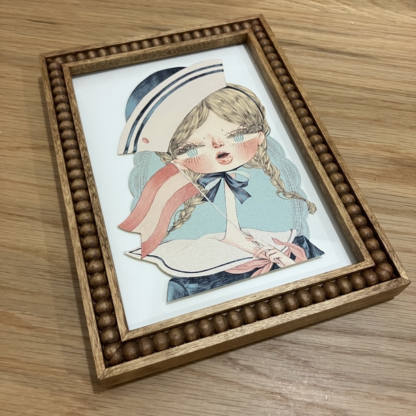 まず木製フレームにガラスフィルターをセットし、その上に飾りたい写真やポストカードを重ねます。