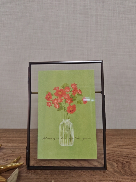 2枚のガラスで挟んで、小さなアートのように飾れます。