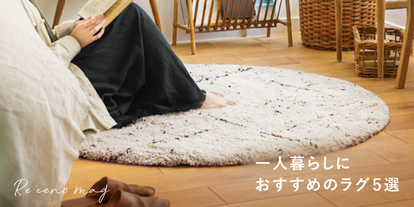 まずは、リビングやベッドサイドなど、くつろぎスペースにおすすめの円形タイプのラグマット。丸くて可愛らしいフォルムが、柔らかく、温かみのある雰囲気に。2サイズ展開で、お部屋に合わせて選べます。