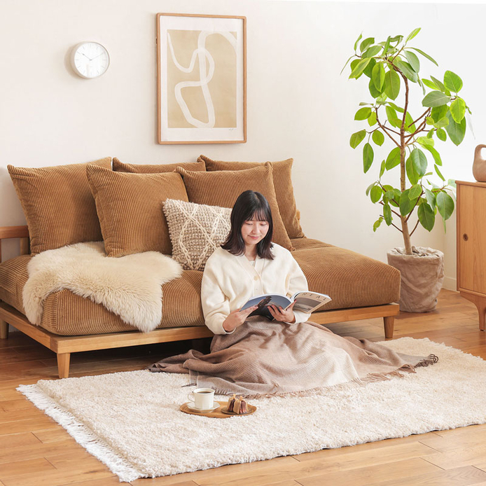 長時間ラグの上で本を読んだり、肘をついて寝転がったりしても疲れにくく、リラックスして過ごせます。