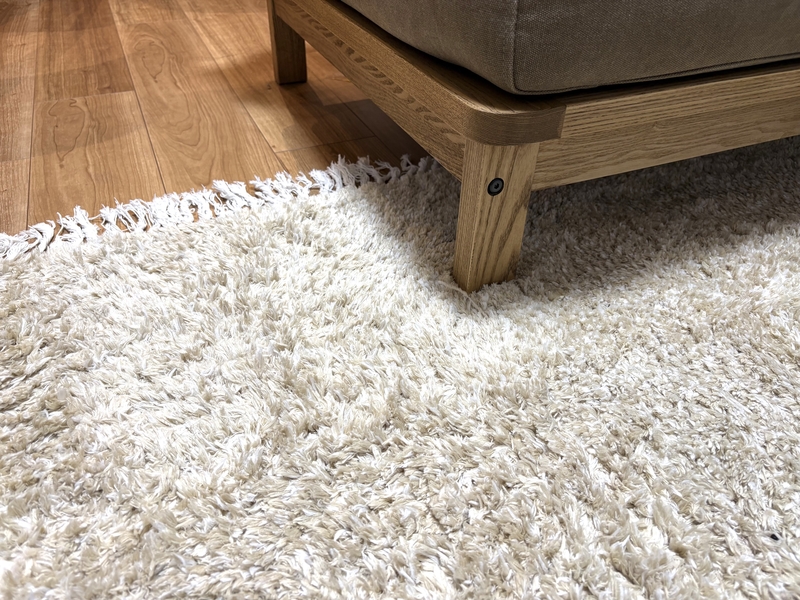 毛足の短いラグはすっきり整然としていますが、素材の質感という点では、どこか物足りなさも感じます。