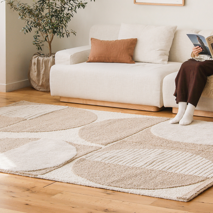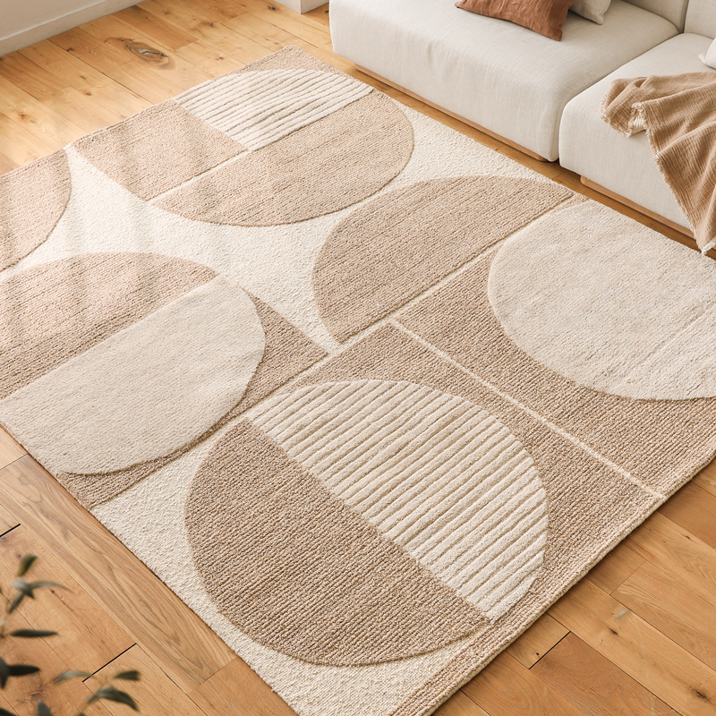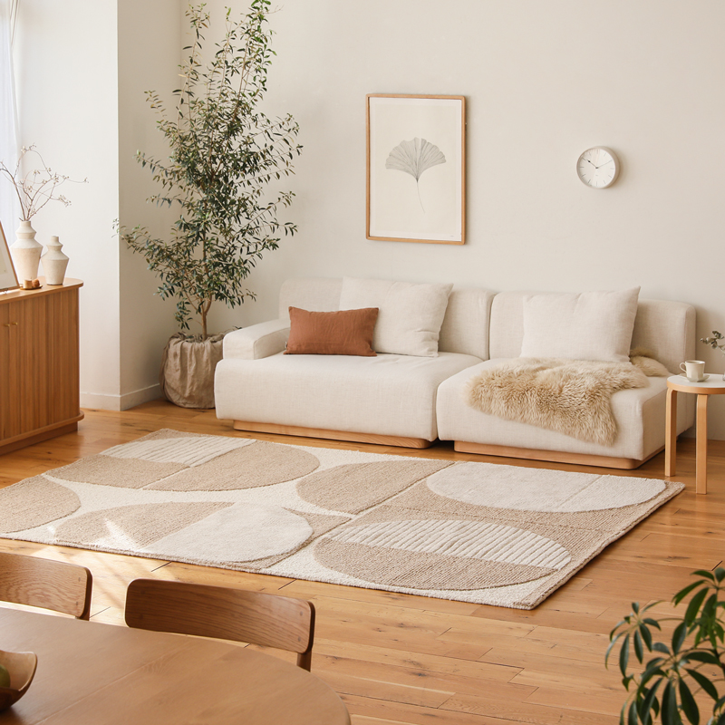 そこでおすすめなのが、円形や四角形を組み合わせた「幾何学模様」が美しいウールラグマット「Orma(オルマ)」です。